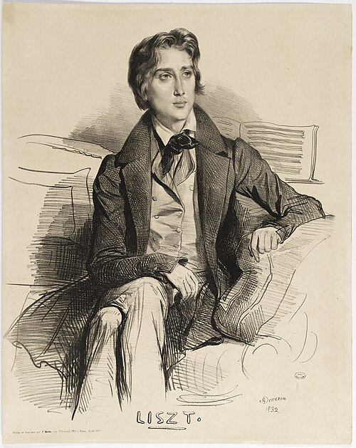Franz Liszt, portret 1832. Door Achille Deveria en Charles Motte.