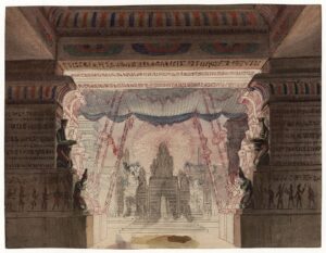 Ontwerptekening van het decor van Die Zauberflöte door Karl Friedrich Schinkel (tussen 1816 en 1880).